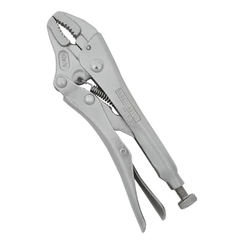 La mordaza curva está diseñada para adaptarse mejor a superficies redondas o irregulares como caños, tornillos o tuercas, proporcionando un agarre firme y seguro. Es una herramienta muy utilizada en mecánica, soldadura, mantenimiento industrial, herrería y trabajos de taller.